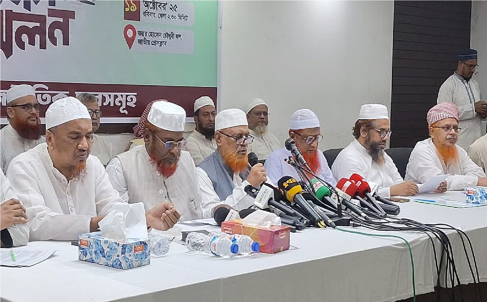 সংবাদ সম্মেলনে উপস্থিত ছিলেন জামায়াতের সেক্রেটারি জেনারেল অধ্যাপক মিয়া গোলাম পরওয়ার, ইসলামী আন্দোলন বাংলাদেশের মহাসচিব অধ্যক্ষ ইউনুছ আলী, খেলাফত মজলিসের মহাসচিব ড. আহমেদ আবদুল কাদের, নেজামে ইসলাম পার্টির মহাসচিব মাওলানা মুসা বিন ইযহার, খেলাফত আন্দোলনের নায়েবে আমির মাওলানা মুজিবুর রহমান হামিদী, এনডিপির সহসভাপতি ইঞ্জিনিয়ার রাশেদ প্রধান এবং বিডিপির মহাসচিব নিজামুল হক নাঈমসহ অন্যান্য নেতৃবৃন্দ।